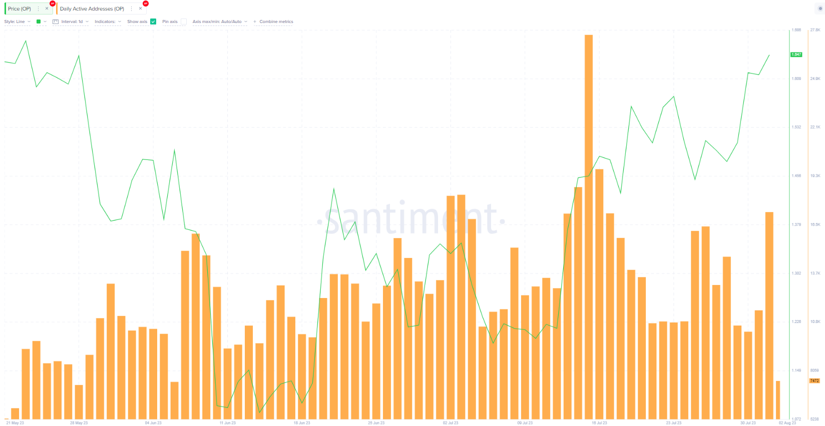 On July 30, the unlock of 32.21 million OP tokens, valued at approximately $52 million, took place. If we consider historical patterns, the recent marginal price gains are likely to be succeeded by a double-digit retracement in the coming days.