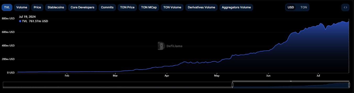 These developments seem to have boosted TON’s price. In less than 24 hours, TON’s price has risen by approximately 2.67%, from $7.21 to $7.31. TON also achieved a new record-high total value locked (TVL). According to DefiLlama data, TON’s TVL is $761.37 million at the time of writing.
