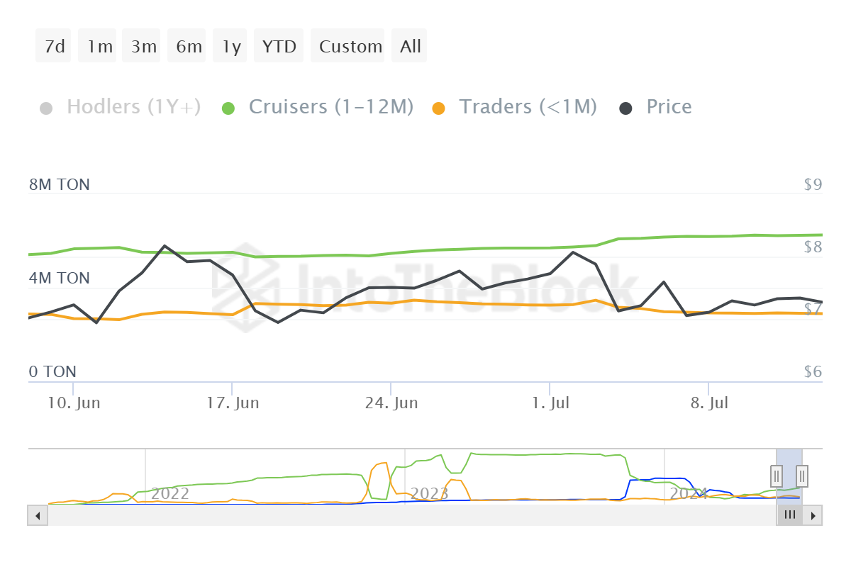 One of the biggest pieces of evidence of conviction came from the shift of supply from the hands of short-term investors into that of mid-term holders. The former hold their assets for less than a month, while the latter do so for more than a month and less than a year. As 4% of TON’s supply made its way into the latter’s wallets, it became clear that the investors wanted sustainable profits.
