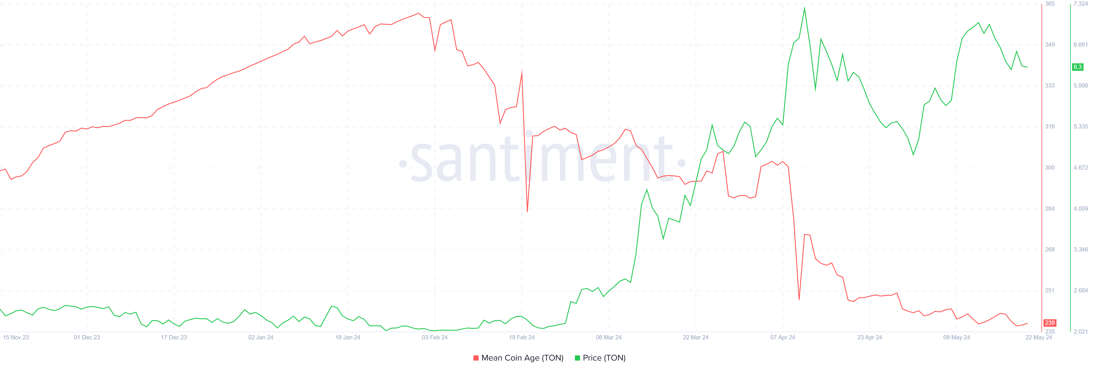 The uptick in this indicator shows investors are holding onto their assets while the downtick hints at supply moving around the addresses. TON has noted a downtick since February, but the broader market cues kept increasing Toncoin’s price.