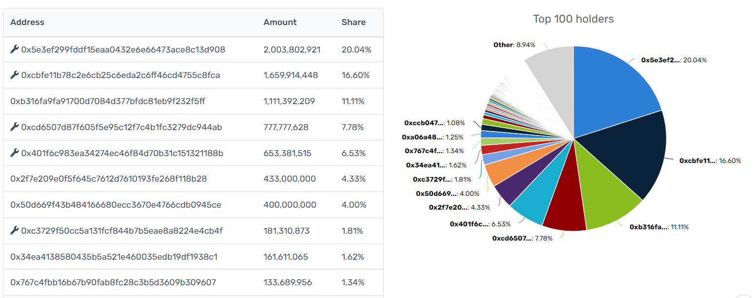 The official addresses that belong to the Polygon Network contracts account for the vast majority of the holdings — like the top holder, which is the staking contract that holds roughly 20% of the supply at over two million MATIC tokens.