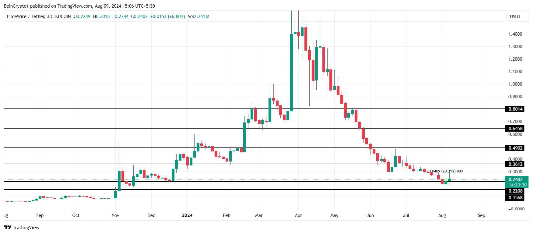 Unlike the other two tokens in this list, LimeWire’s rally was less spectacular, but it still managed to post a 20% rise over the past week. However, LMWR has a long way to go before it can recover from the recent drawdown.
