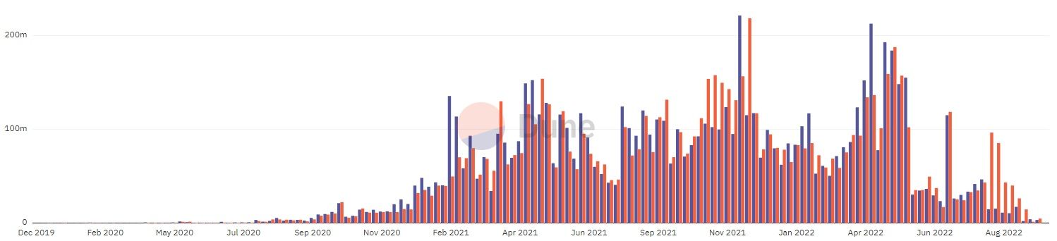SponsoredThe weekly deposits and withdrawals have also taken a significant hit, to the point where they are less than a tenth of what they were in the early parts of the year. In the last week of September, weekly deposits and withdrawals amounted to $3.6 million and $5 million, respectively.