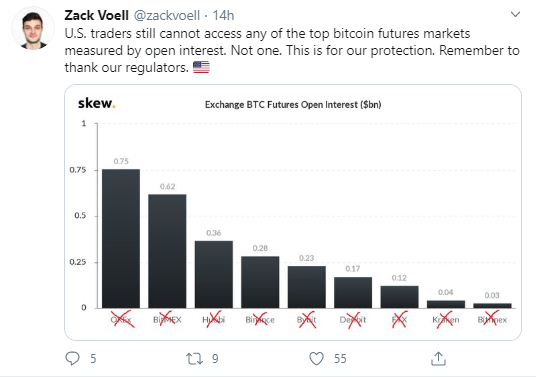SponsoredZack Voell in his tweet highlighted how little access US traders have to the market. With an accompanying image of a graph depicting the roaring futures interest from market analysis firm Skew, he posted:
