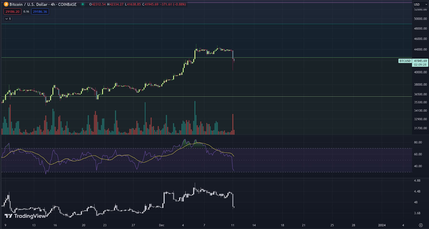 The crypto markets are seeing widespread losses this Monday morning, with Bitcoin falling over 5% to around $42,000.