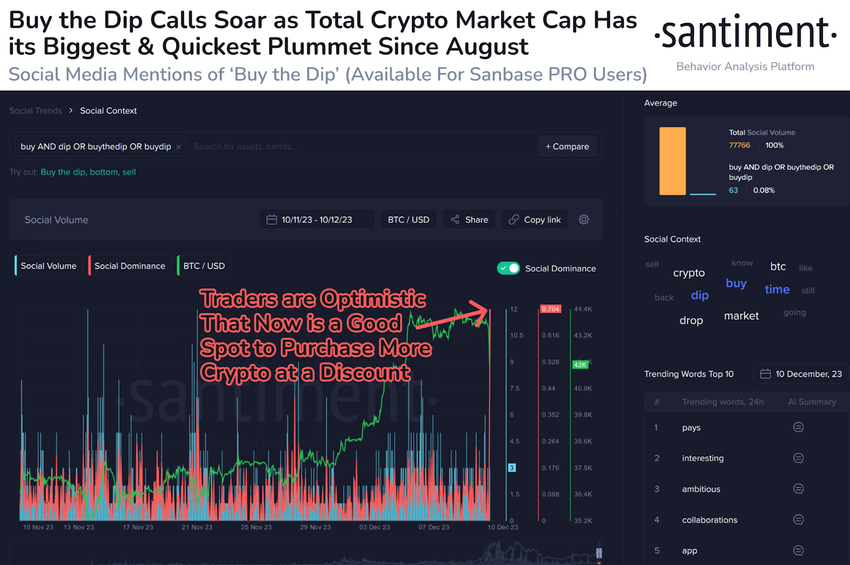 However, Santiment also observes there seems to be significant enthusiasm to “buy the dip” at the lower prices. As they state: