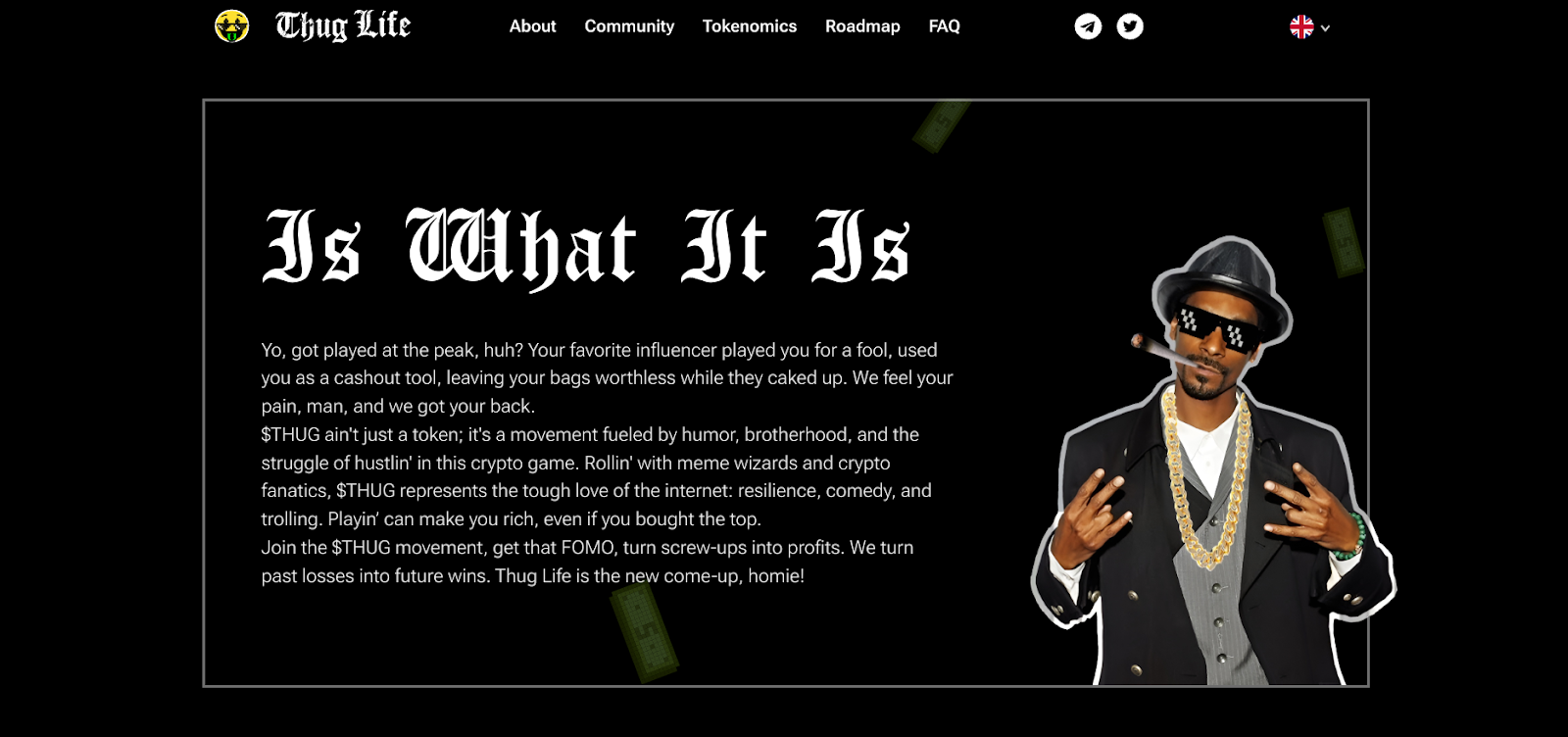 Thug Life builds on the shortfalls of other meme coins by using sustainable tokenomics and community rewards.