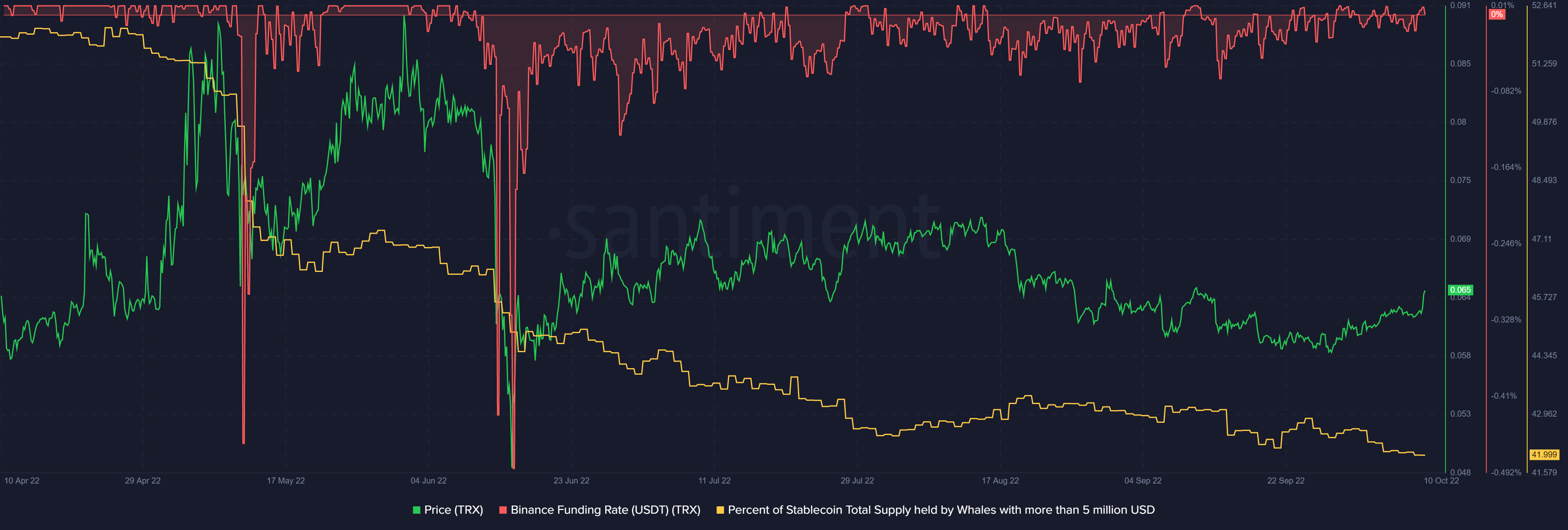 SponsoredAt press time, TRX traded at $0.06472 as its 24-hour volumes sat at $469.96 million noting a 107.38% rise over the last day. The sheer rise in trade volumes over the last day alongside bullish price momentum was indicative of a renewed retail interest in the token.