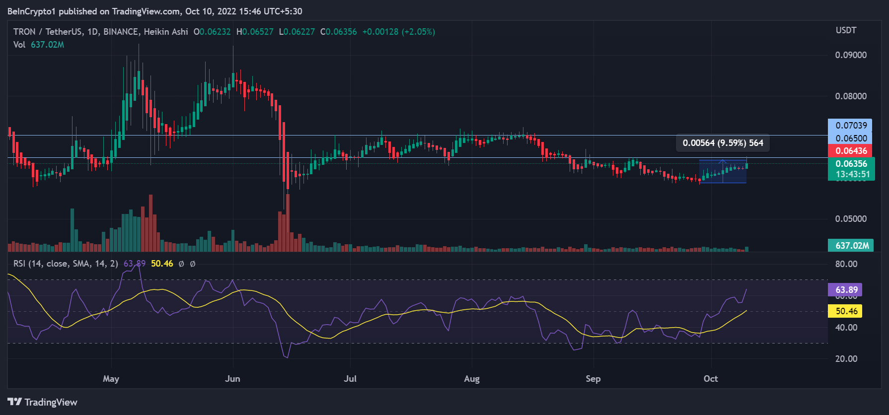 While Tron price has managed to gain 9.59% price from the $0.058 lows, it still seemed to lack a push from bulls that would place its price above the key resistance level at the $0.065 mark.Â
