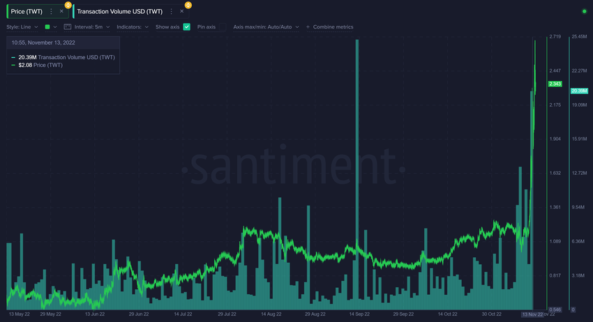 The trading crowd had already gotten a nice head start on pumping TWT’s price over the weekend, and its price is currently +103% in the past 48 hours.
