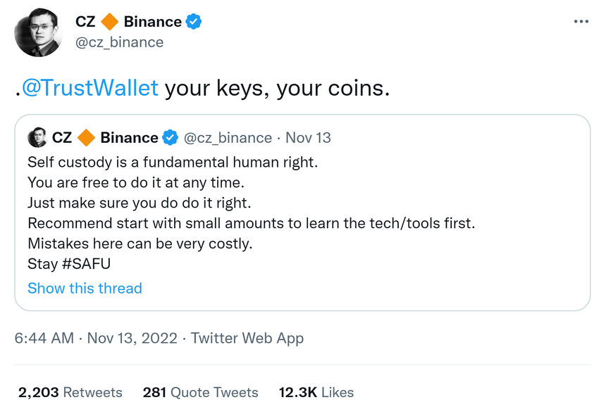 So always the opportunist, CZ made one of his (supposed) favorite options for self-custody in crypto known. A few commenters even noted that Binance’s CEO might have a personal incentive for shilling Trust Wallet out of all the options that are available for self-custody.