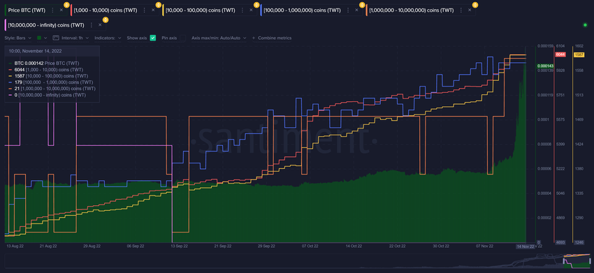 We can also see that mid and large-tier TWT addresses have been growing quite steadily in number. And certain tiers, like the 10k to 100k and 1m to 10m addresses, have really upped the number of addresses in the past week.