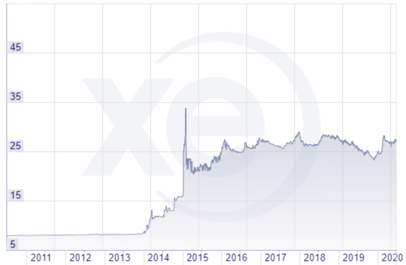 The country’s economic performance over the past few years has been turbulent due to the ongoing territorial dispute with Russia. At one point in 2013, Moody’s downgraded the country’s credit rating to Caa1 (poor quality and very high credit risk).