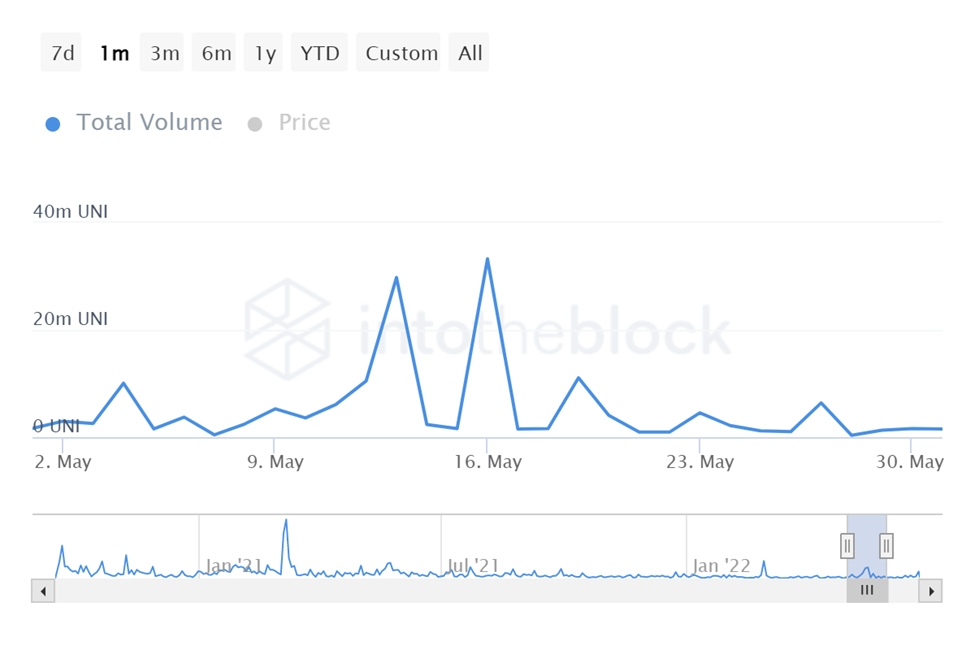 On May 16, the total volume reached a peak of 33.25 million UNI.