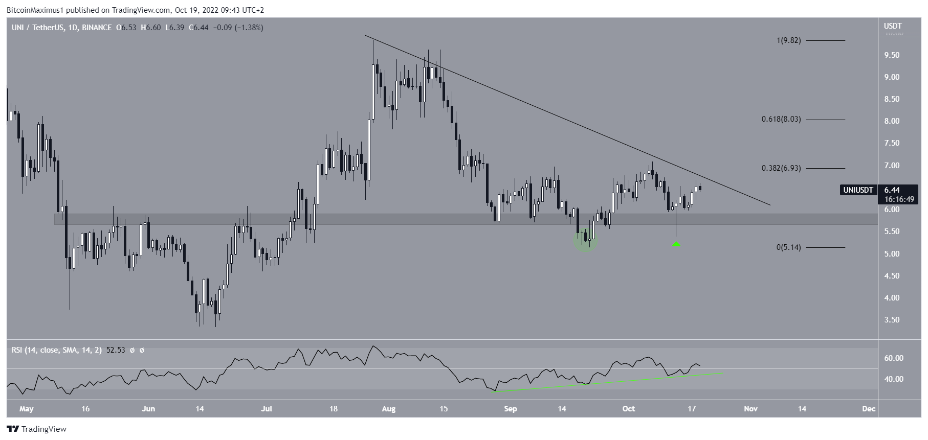 UNI later returned to the $5.80 area once again on Oct. 13, creating a long lower wick in the process. This indicates heavy buying pressure, supporting the possibility of a breakout.