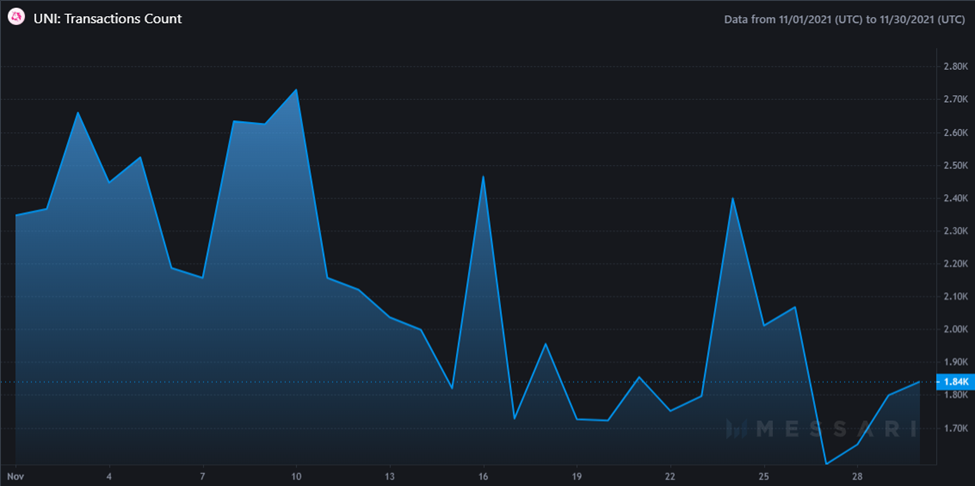 The consistent decrease in transaction counts in 2022 has been largely detrimental to the fortunes of the decentralized exchange.