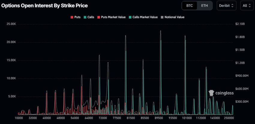 BTC Options Open Interest By Strike Price. Source: CoinGlass