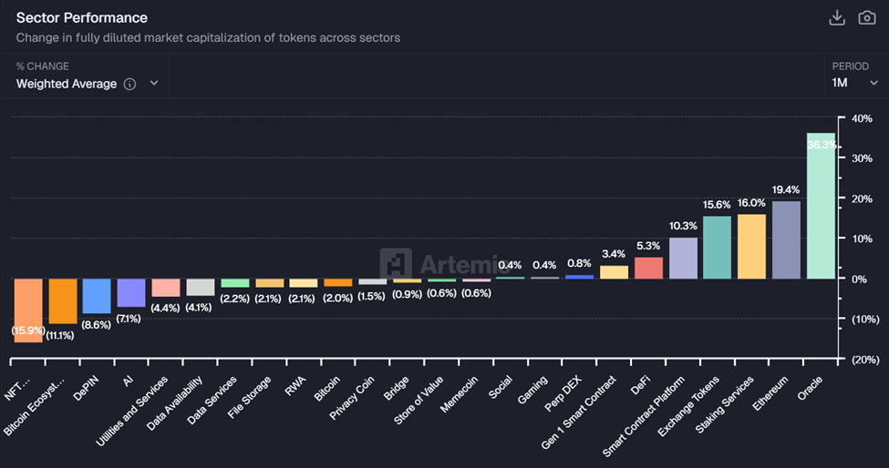 Over the past month, Oracle tokens have been one of the top-performing categories in the crypto market.