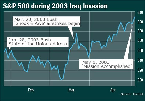 Research on the 2003 Iraq invasion shows that US stocks had already priced in a lot of fear before the war officially began.