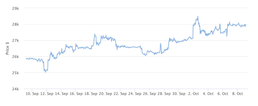 At the time of publication, Bitcoin’s price stands at $27,961.