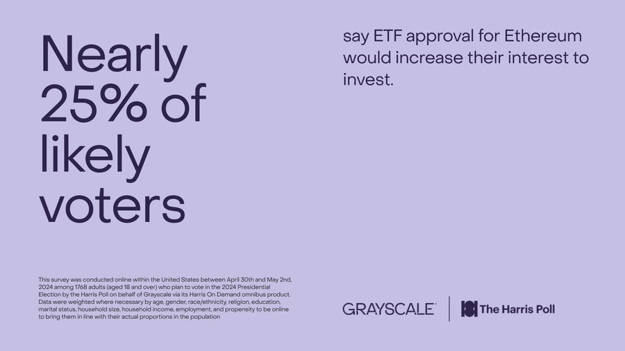 The poll reveals that nearly one in four likely voters would consider investing in Ethereum if an ETF-based product were approved. This approval would increase their interest in Ethereum and other crypto assets beyond Bitcoin.
