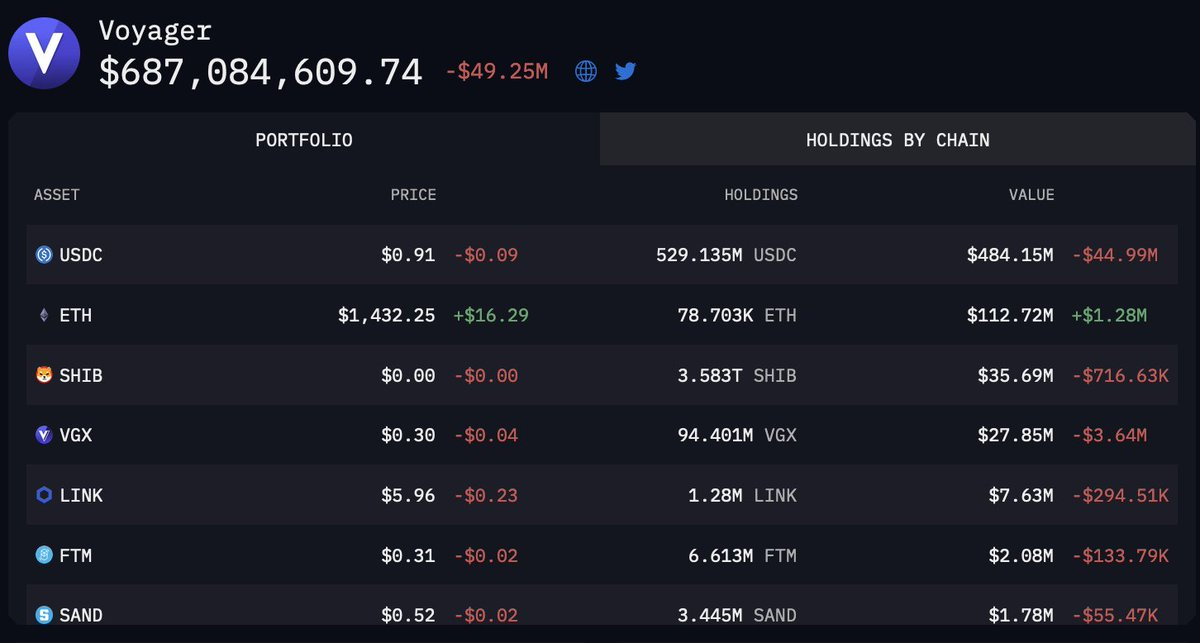 Even with the increase in its price overnight, Voyager is still down $27 million on its USDC to dollar value.