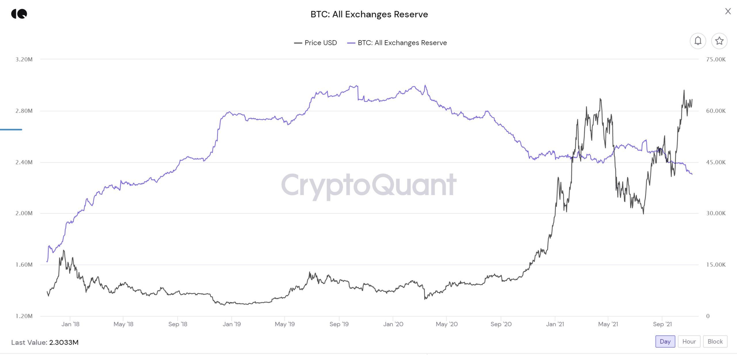 The amount of bitcoin held on centralized exchanges has reached its lowest point in more than three years according to data from CryptoQuant. Currently, it stands at 2.3 million BTC, the last time this number was lower was in August 2018.