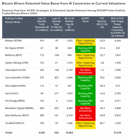 The asset manager also highlights that entering the AI/HPC sector could help Bitcoin miners improve their financial health. Typically, these companies struggle with poor balance sheets due to excessive debt, share issuance, or high executive compensation.