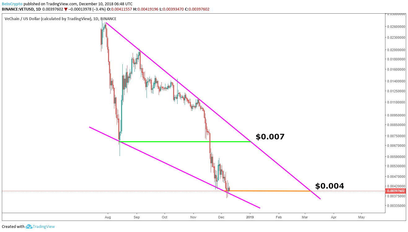 Do you think VET will make a comeback in 2019? Will VET continue to see new lows before a reversal happens? Let us know your thoughts in the comments below!Â