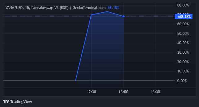 Following this announcement, the value of the VANA token jumped by almost 70%. It marks a typical reaction from tokens ahead of imminent listings on popular exchanges.