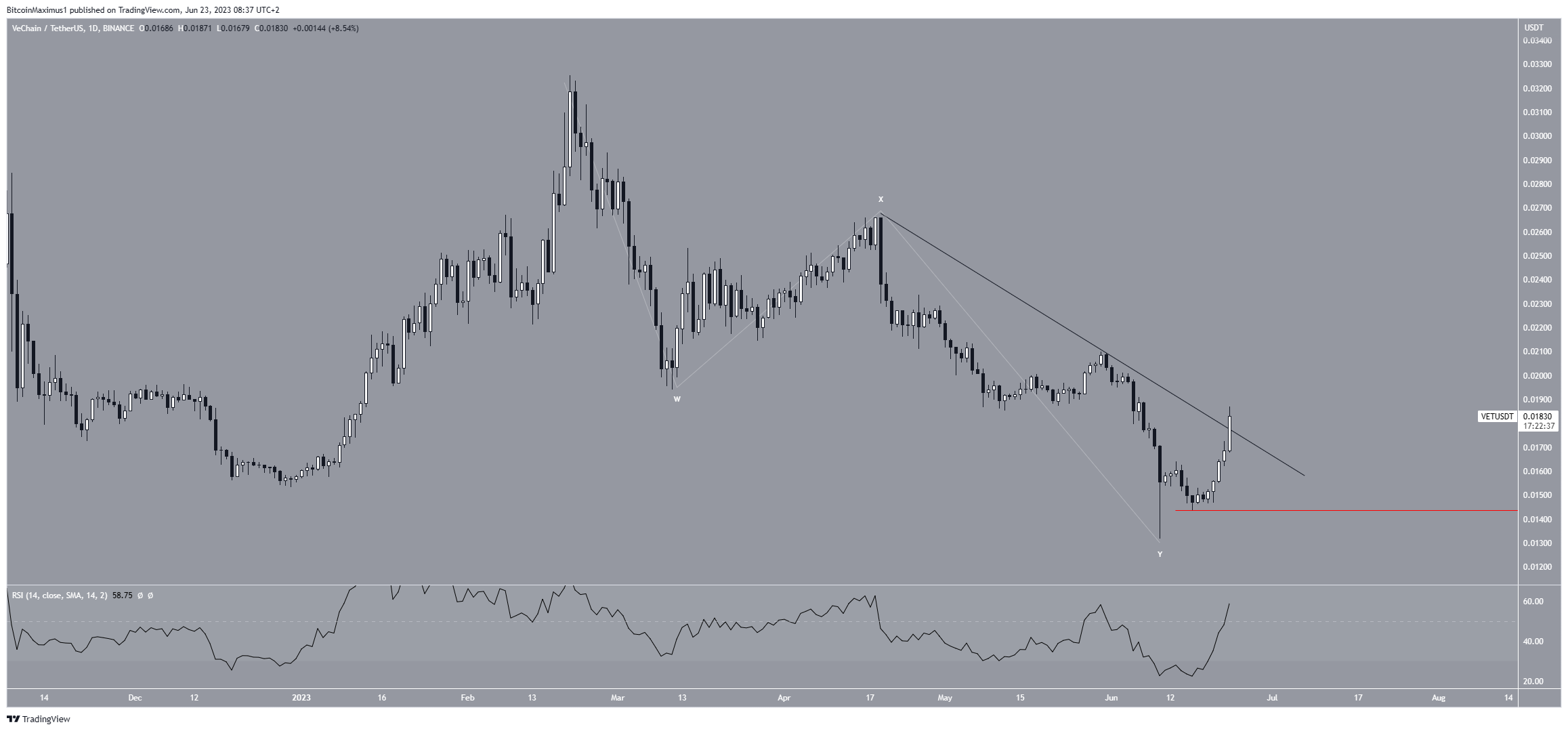 Despite this bullish VET price prediction, a drop below the local low (red line) of $0.014 will mean that the trend is still bearish. In that case, a drop to $0.010 will be on the cards.
