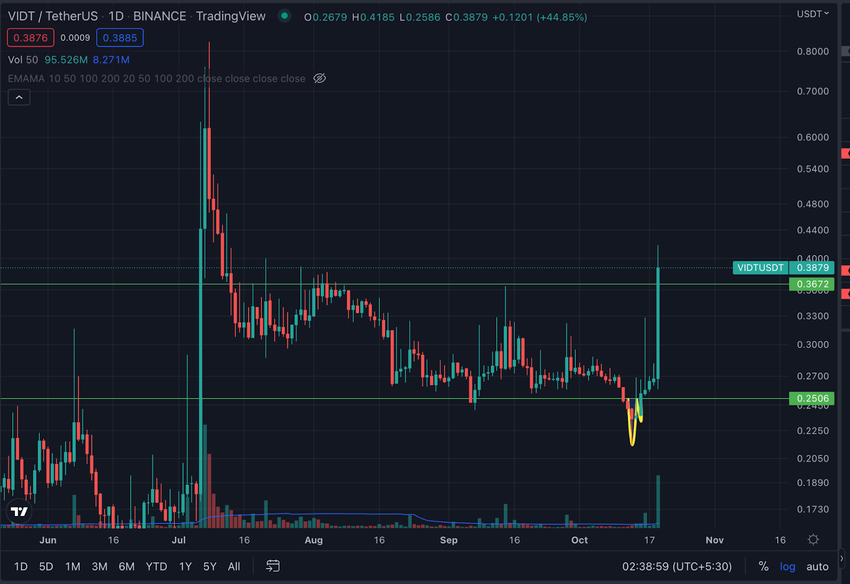 VIDT coin is more than 45% up today, it is the top gainer of Binance. Why is the coin pumping?