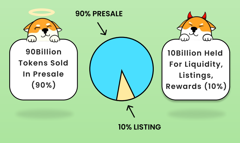 Love Hate Inu is a community-centered project, and that’s reflected in the format of the presale. The project is releasing 90% of its 100 billion token supply through the Love Hate Inu presale.
