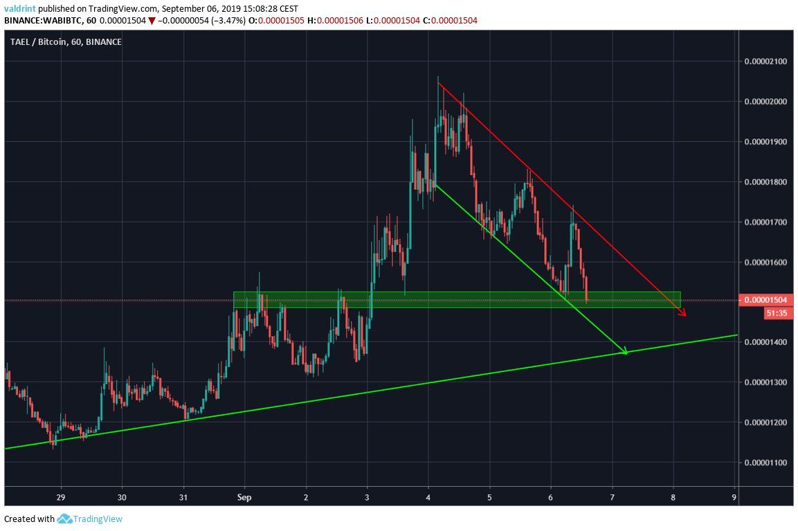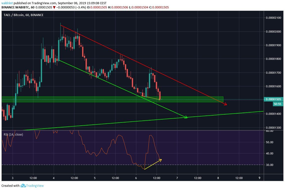 On August 21, 2019, the WABI price reached a low of 970 satoshis. An upward move ensued and the price reached a high of 1616 satoshis on August 15. After a consolidation period, WABI reached a higher high of 2062 satoshis on September 4.