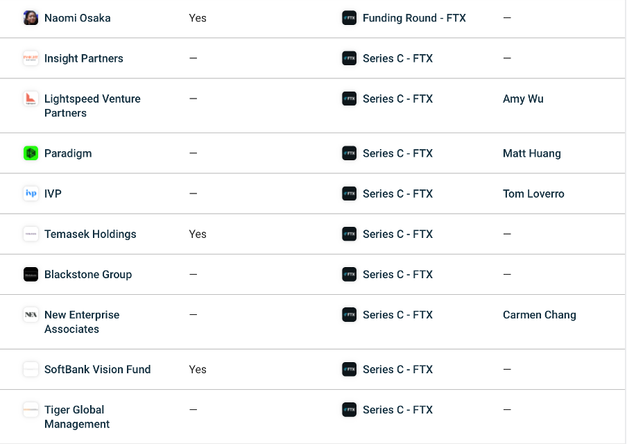 One can see the top 10 FTX series C investors per CrunchBase’s data.