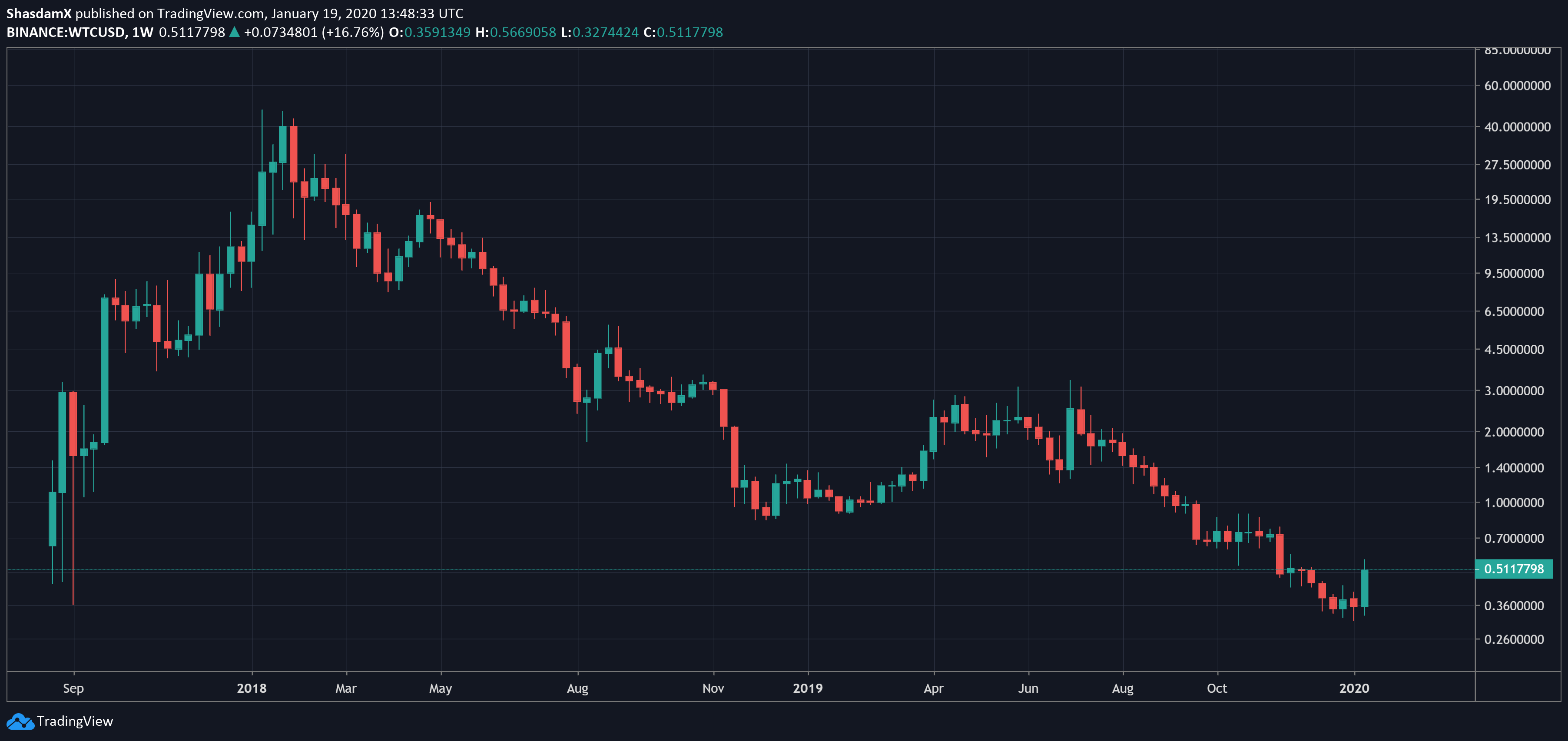 Waltonchain has been among the worst-performing altcoins since the bear market of 2018, with its losses continuing throughout 2019. At its all-time high, all tokens in circulations were worth close to $1 billion but the project now boasts a measly total market capitalization of just $22M. Last year, it was trading for around $1.11 whereas it is now trading for $0.50.