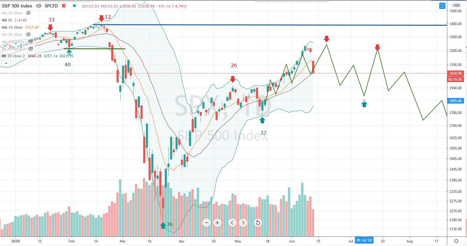 On June 11, the S&P 500 price declined by 5.8%. This was the largest percentage decline since March 16 and could have been the beginning of a longer-term downward trend.