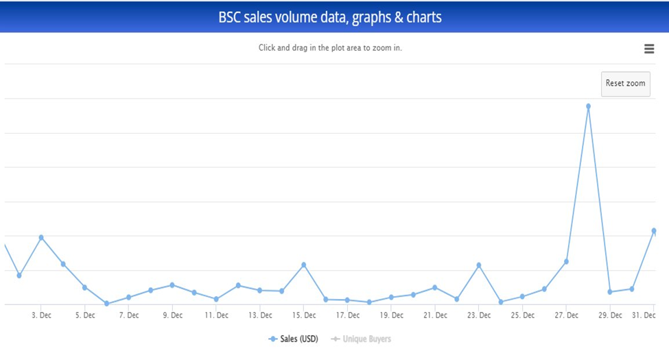 With the crash in the price of cryptocurrencies across the board towards the end of 2021, BSC NFT sales volume took a hit and shed 96% of its total sales volume in August when it recorded just $24,000.
