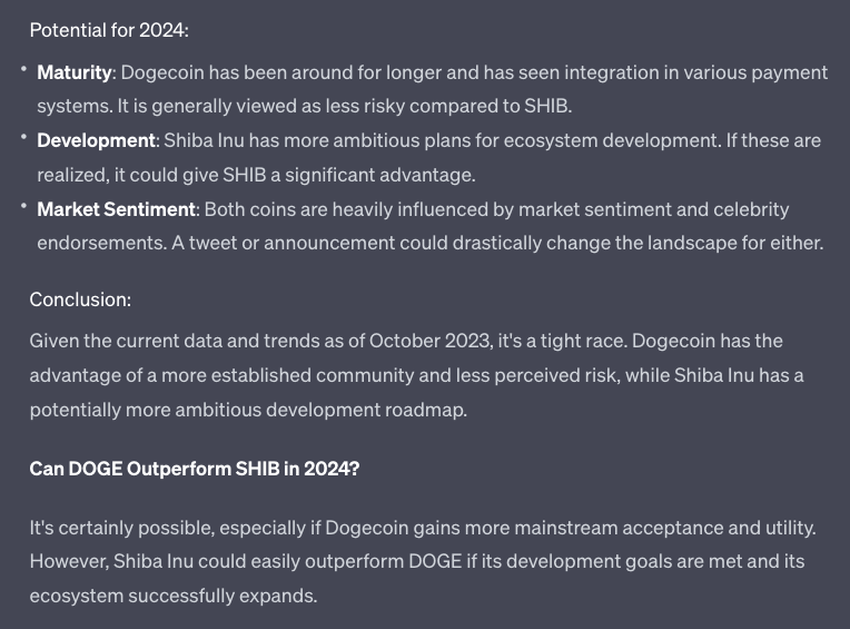 ChatGPT Believes Dogecoin’s Maturity & Shiba Inu’s Roadmap Make 2024 Outlook a Close Call