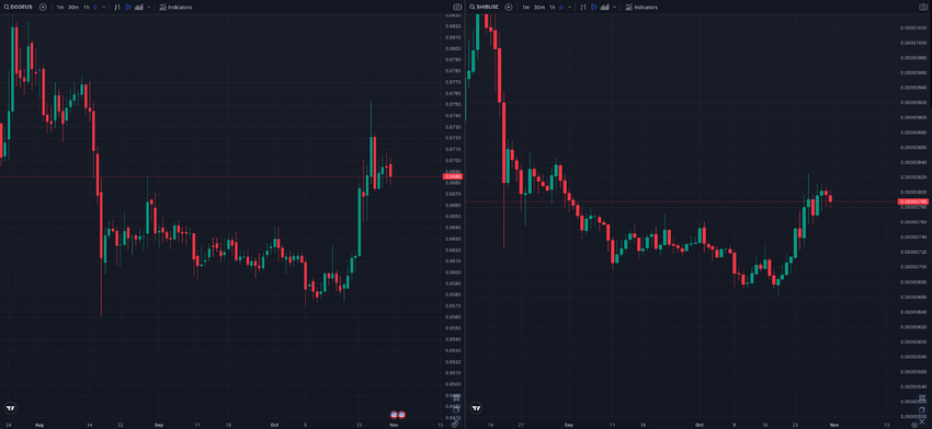 Both DOGE and SHIB have broken free of the tight trading ranges they were confined in, signaling a potential shift as they garner renewed interest from investors.