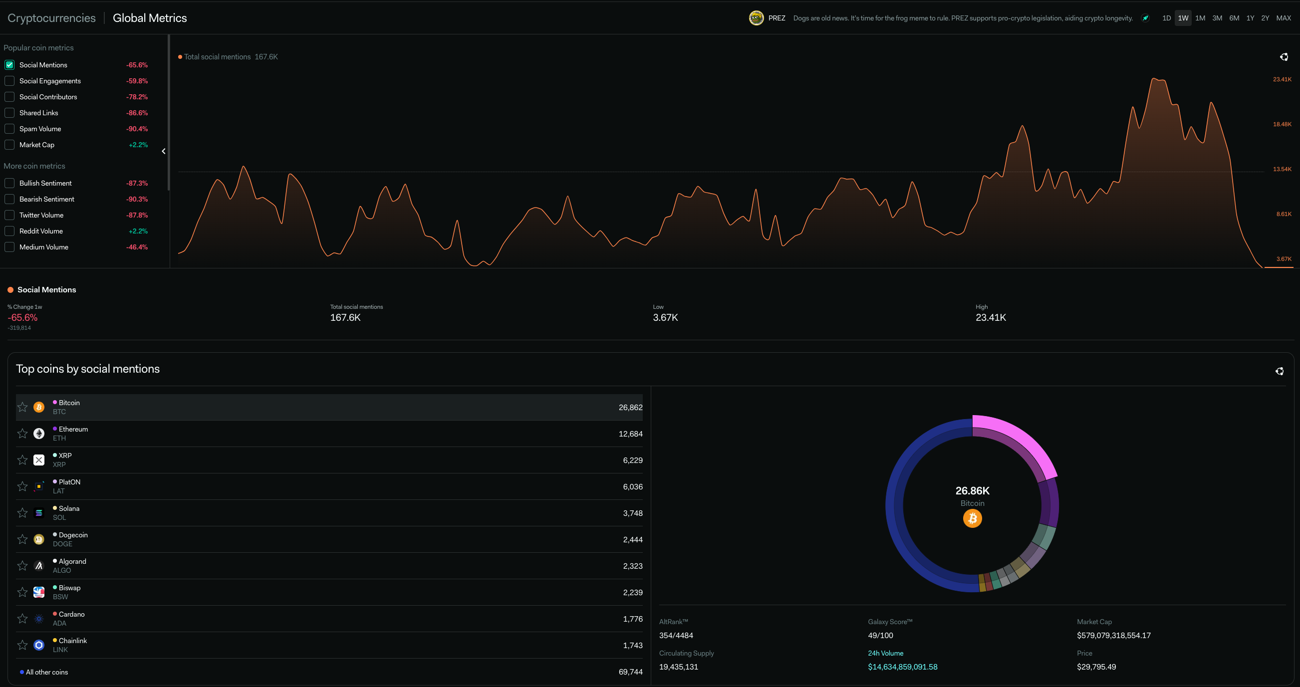 With XRP enjoying its moment in the sun following Ripple’s partial victory against the SEC, its unsurprising trading volume increased to 21%, outstripping that of Bitcoin.