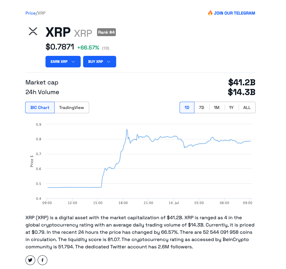 The news saw XRP price nearly double, surging to $0.93 before falling back to $0.78 by press time. The saga has been ongoing since December 2020 when the SEC sued Ripple and its two chief executives, Brad Garlinghouse and Chris Larsen, claiming the company was offering an unregistered security in XRP.