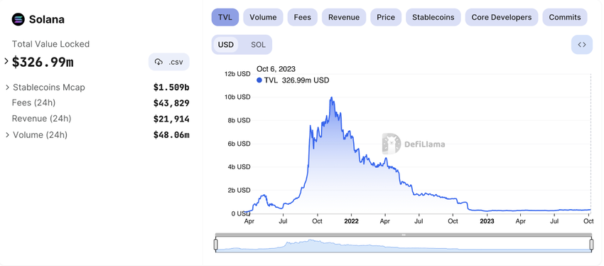 On October 2, BeInCrypto reported that Solana’s (SOL) Total Value Locked (TVL) surged to a new 2023 high. As of writing, the TVL stands at $326.99 million.