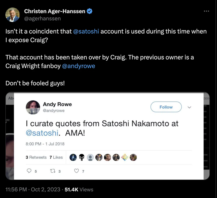Eventually, the community started suspecting Craig Wright, who often claims to be Satoshi Nakamoto, was running the account. So far, Wright has not given any clarification regarding the matter.