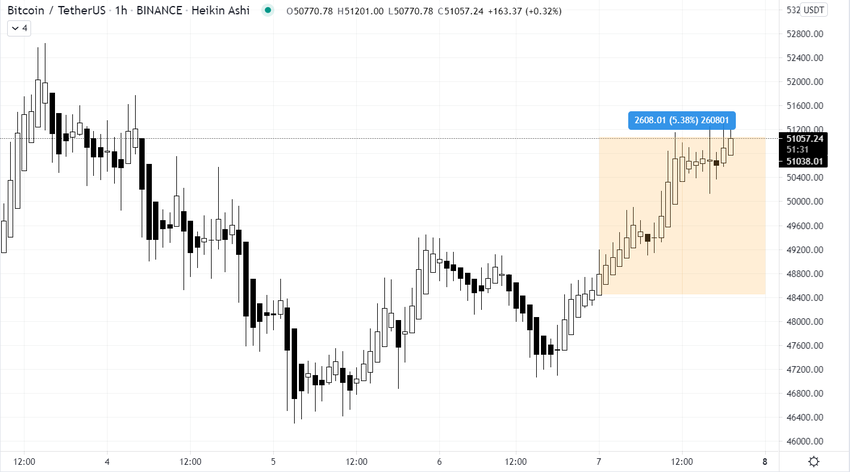 The weekend started slowly. Saturday brought very little movement to the market as the majority of altcoins remained flat. However Sunday appears to have brought strong buying momentum as Bitcoin rallied over 5% on Sunday to reclaim the $50,000 resistance. BTC broke and held $51,000 on Sunday as the market recovery continues.