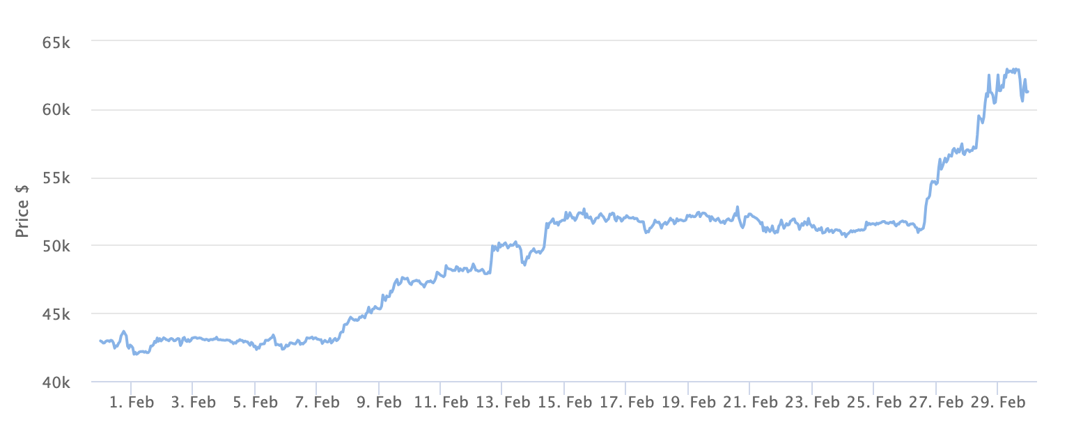 At the time of publication, Bitcoin is hovering around $61,259. This shows a 19.37% increase over the last week and approximately 42% growth in the past 30 days.