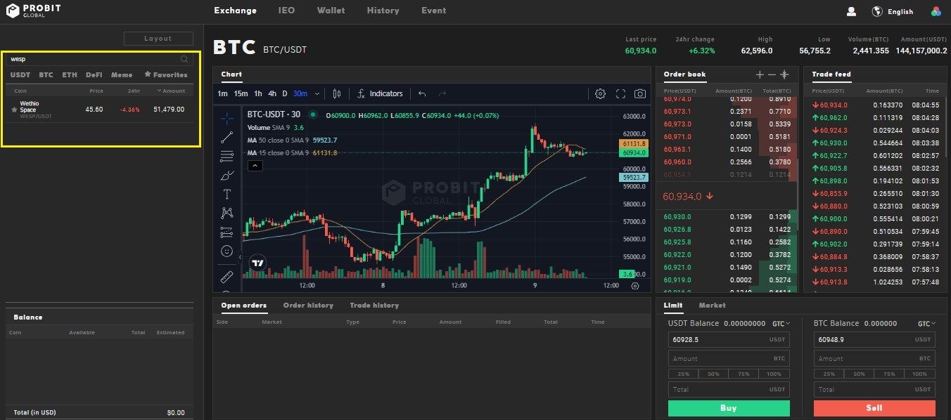 On the search bar, type in “WESP” and select the WESP/USDT trading pair.