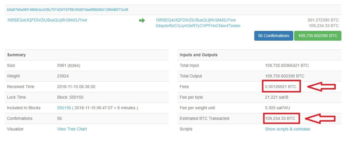This transaction incurred a fee of just 0.00126 BTC or just under $7 — which is virtually free, considering the amount that was sent.