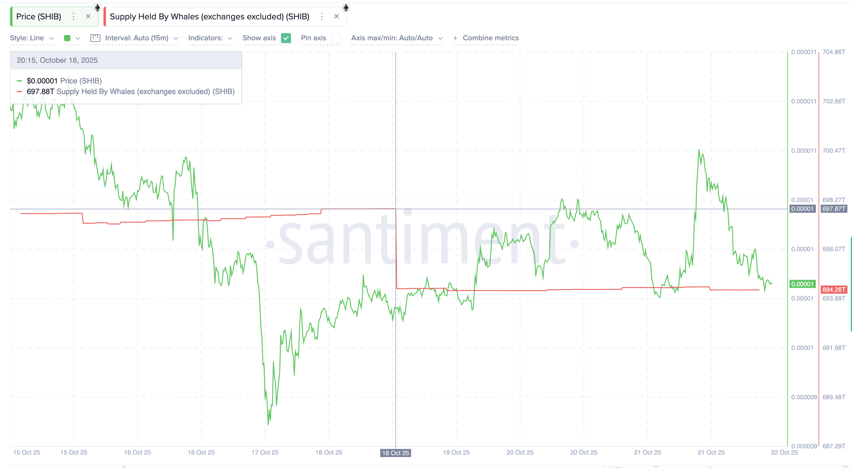 A daily close below $0.0000097 could send it to $0.0000092, while a breakout above $0.000010 might open the door toward $0.000011. For now, however, whales seem unconvinced that such a SHIB price rebound is near.