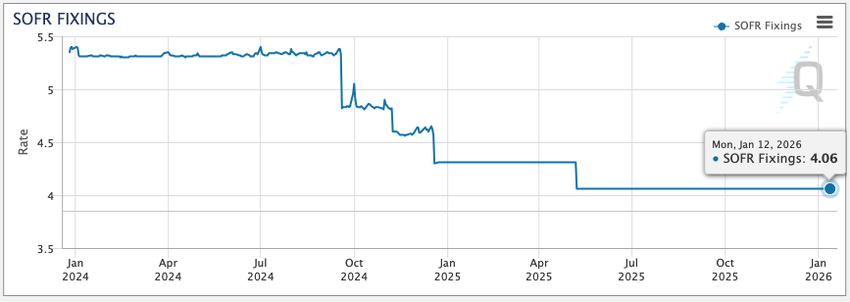 Implied interest rate curve based on SOFR futures. After Powell’s hawkish speech before Christmas, the interest rate market has priced the terminal rate of this round of rate cuts above 4%. Source: CME Group